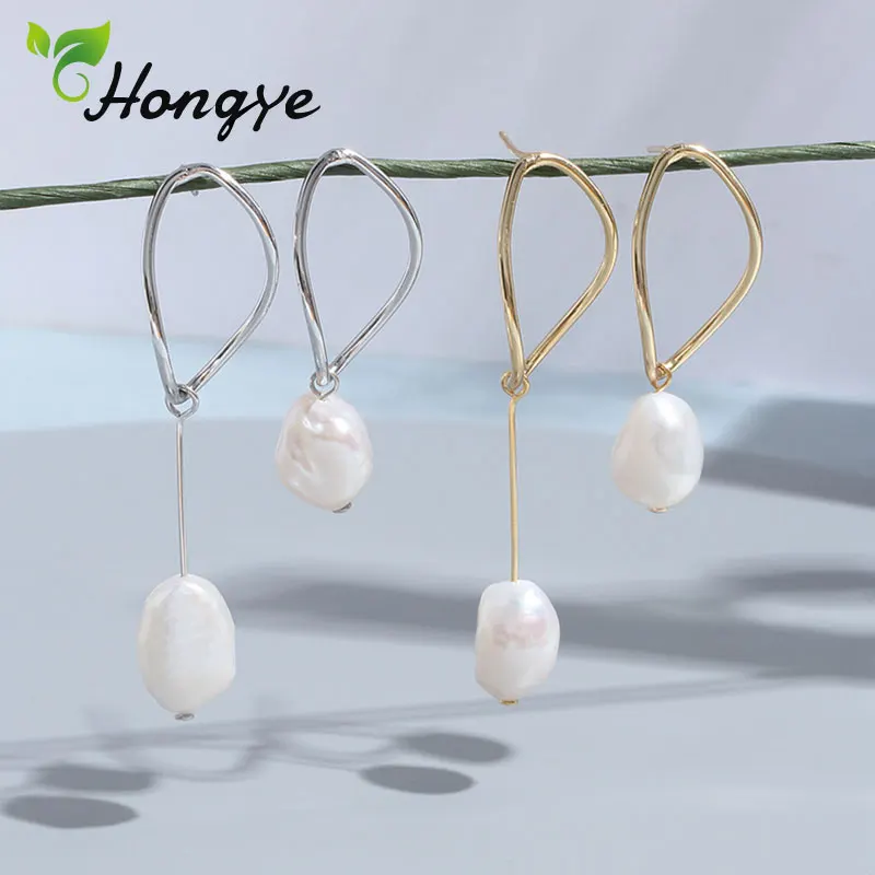 Hongye серьги, модное ювелирное изделие, асимметричные женские серьги-капли с бриллиантами, серебряные/Золотые массивные серьги, ювелирное изделие из пресноводного жемчуга