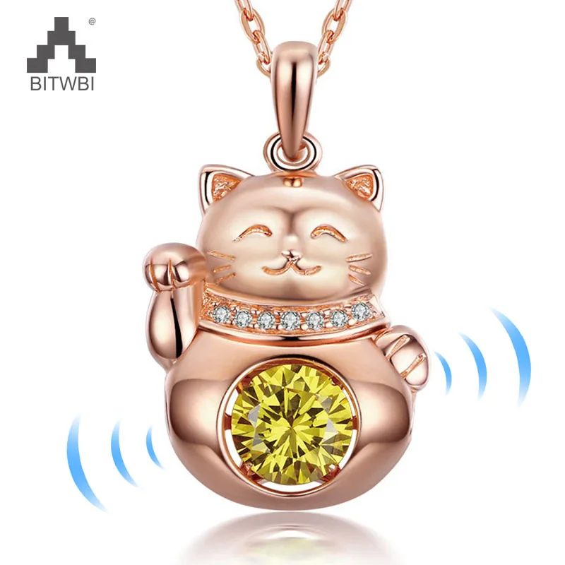 925 пробы 100% Серебро Фортуна кошка подвески милые животные встряхивания желтый кристалл цепочки и ожерелья для женщин ювелирные изделия
