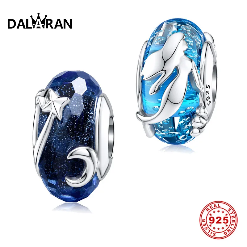DALARAN, Стерлинговое Серебро 925 пробы, звезда русалки, европейские муранские стеклянные бусины, подходят для Пандоры, очаровательные браслеты, браслеты, сделай сам, ювелирные изделия