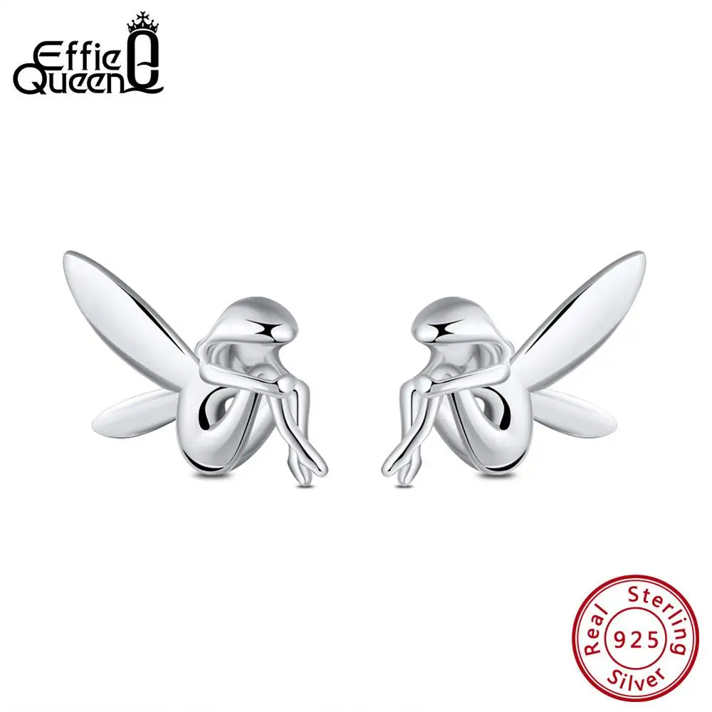 Effie queen 100% стерлингового серебра 925 Серьги гвоздики для женщин Сказочный эльф маленькая девочка форма серебряные украшения, серьги Brincos BE97