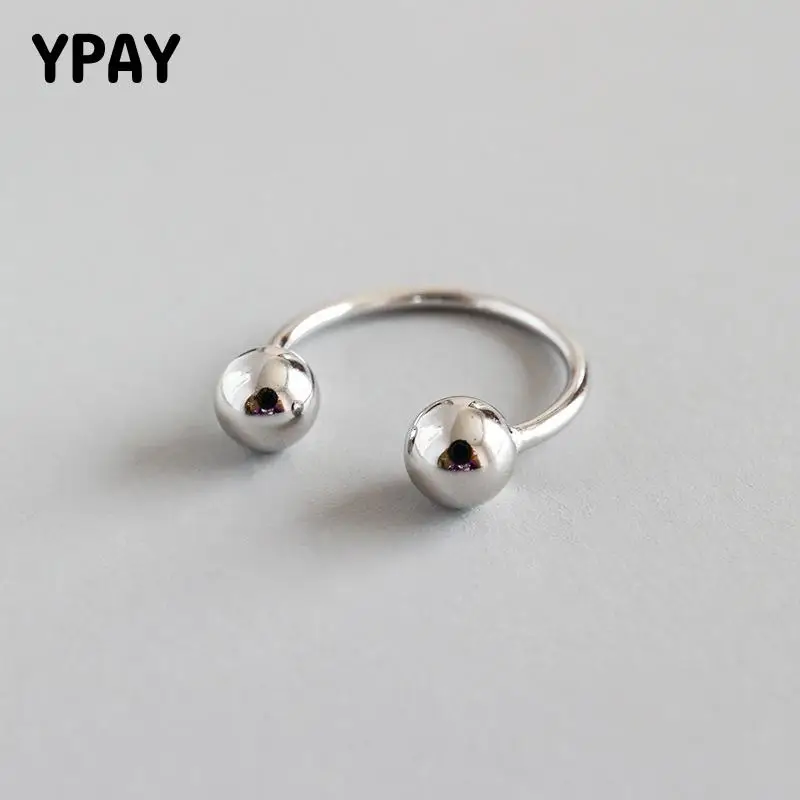 Уход... натуральная 925 пробы серебро незамкнутые кольца с регулируемым размером для Для женщин корейский стиль махрово бусины палец кольцо ...