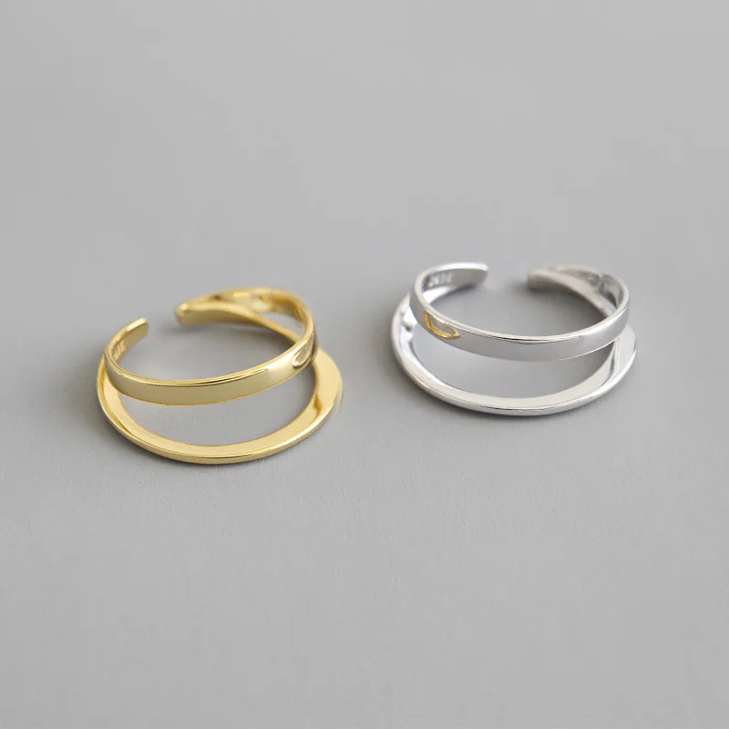 1 шт., Аутентичные ювелирные изделия из стерлингового серебра S925 пробы, белые/Золотые двухрядные линейные кольца, регулируемые TLJ653