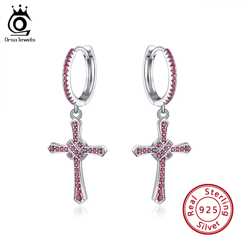ORSA JEWELS круглые свисающие серьги с крестом, зеленый розовый CZ, настоящее Серебро S925 пробы, серьги на День святого Валентина, ювелирное изделие 2020 SE271