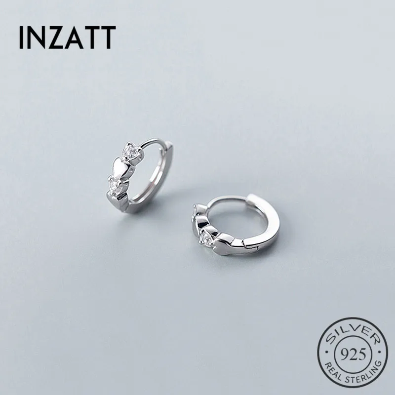 INZATT, Настоящее серебро 925 пробы, геометрические циркониевые круглые серьги-кольца с сердцем, для женщин, для вечеринок, ювелирные украшения, аксессуары