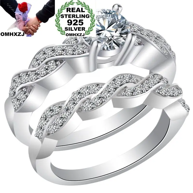 OMHXZJ Оптовая Продажа Европейская мода женщина вечерние человек свадьбу подарок белый любовник витой AAA Циркон 925 пробы Серебряное кольцо ком...
