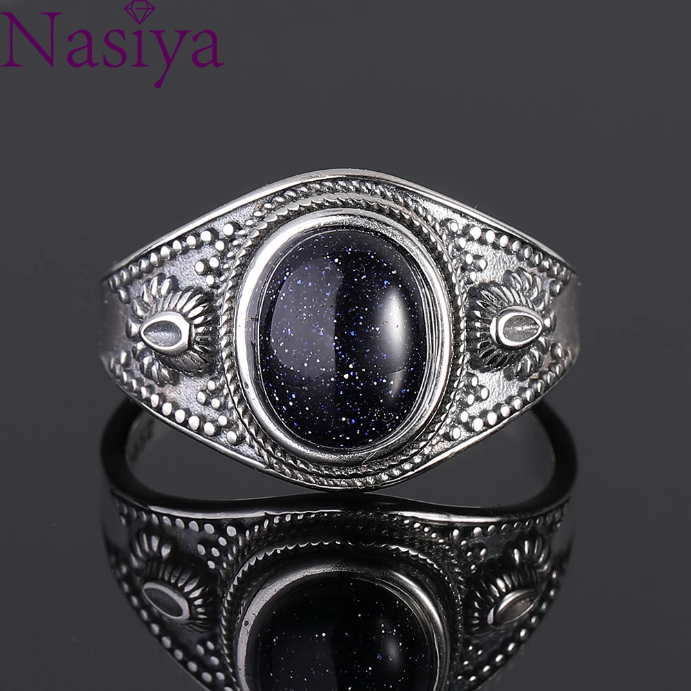 Новый дизайн 5x7мм синее кольцо из песчаника 925 пробы Серебряное кольцо в стиле панк; бижутерия для женщин для коктейльной вечеринки подарок на день рождения