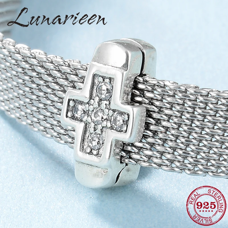 Новый 925 пробы Серебряная цепочка с крестиком прозрачный CZ бусы-клипсы подходят оригинальный Reflexions браслет, ювелирные изделия с бриллианта...