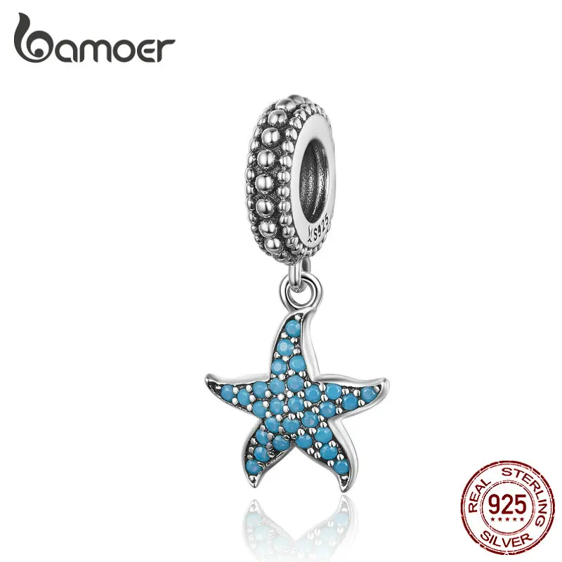 BAMOER подвеска Морская звезда очарование 925 пробы серебро Морской житель Ocean подвески для браслета S925 Изготовление ювелирных изделий из драго...