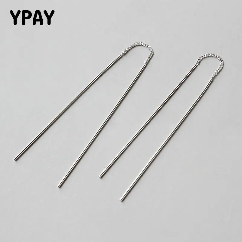 Уход... 100% натуральная 925 пробы серебро небольшой длинные геометрические серьги Подарки для Для женщин девочек ухо линия уха аллергии цепи б...