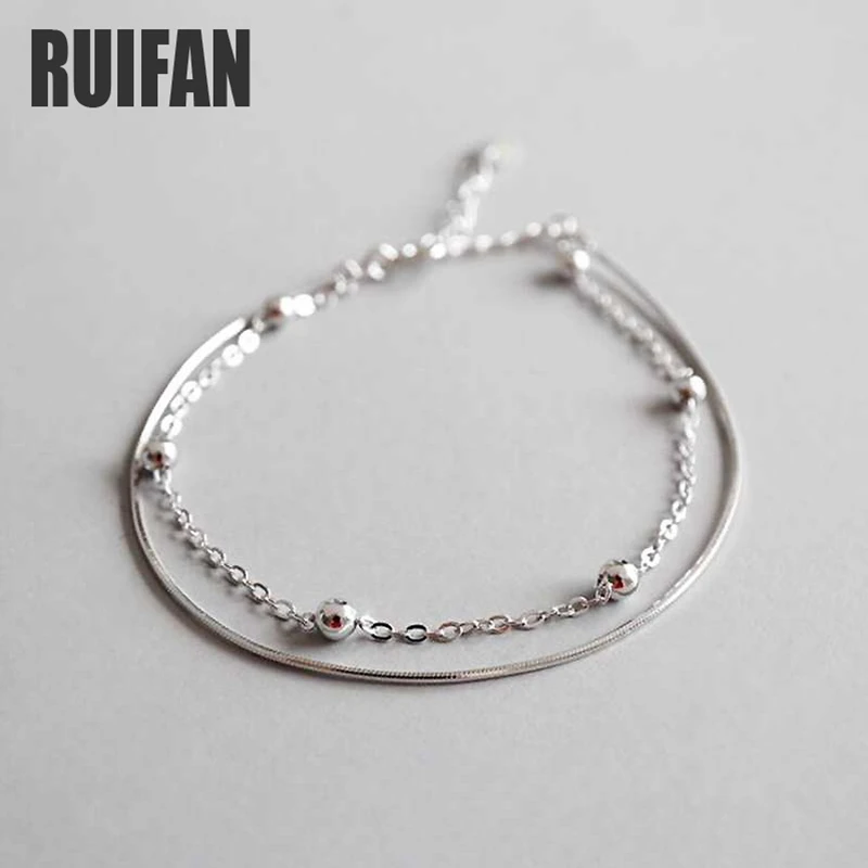Женские двухслойные браслеты Ruifan, браслеты из 100% стерлингового серебра 925 пробы с тонкой цепочкой под змею, ювелирные украшения YBR058