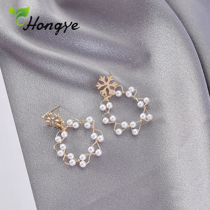 Hongye женский большой серьги с натуральным жемчугом цветочный Металл Серебро 925 серьги бисером петля обувь для девочек сладкий модные украше...