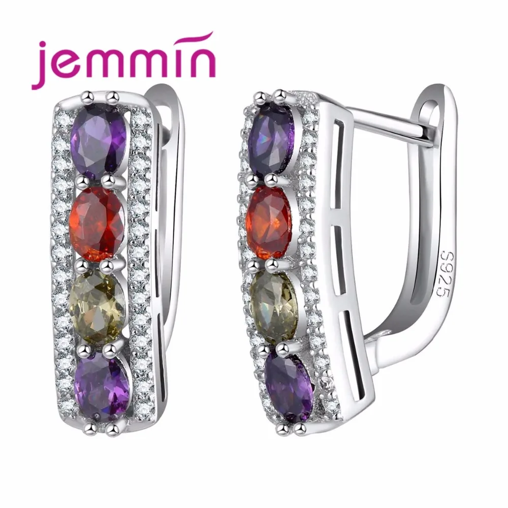 Jemmin fine качество серьги кольца с овальной кристалл 925 пробы серебряные свадебные обручение для женщин обувь девочек Brincos подарок