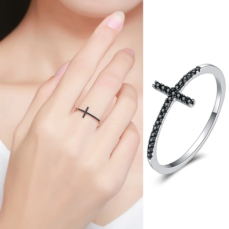 WOSTU, 100% чистое серебро 925 пробы, крестообразные кольца на палец с черным цирконием, для женщин, вечерние ювелирные изделия в подарок, DXR067