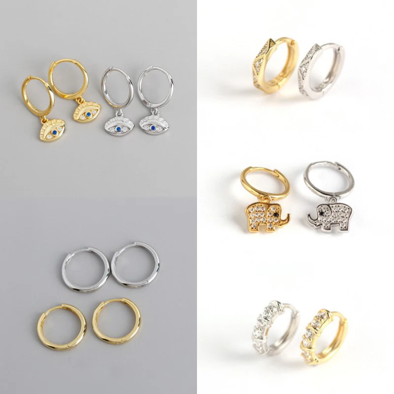 Женские серьги-кольца из стерлингового серебра S925 в европейском стиле, золотые серьги-кольца для девушек, серьги-кости с цирконием, серьги со слоном и сглаза