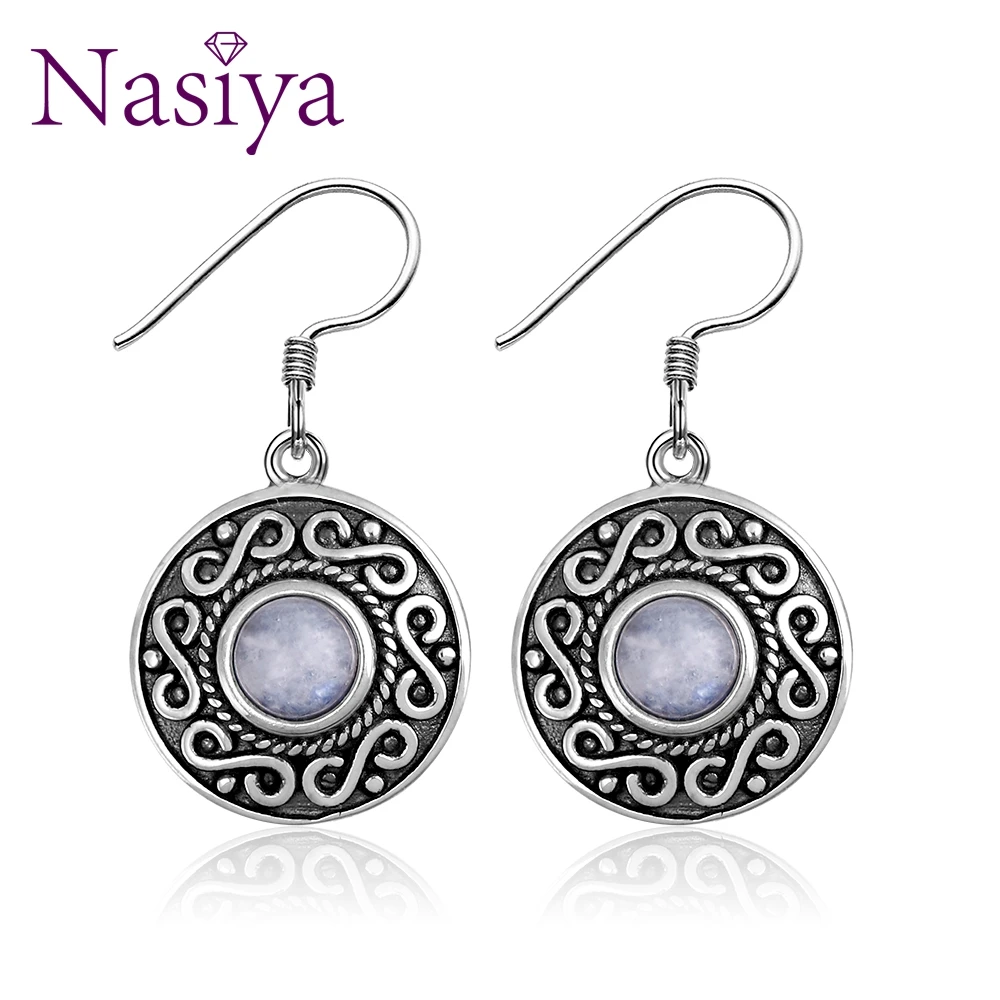 Nasiya этнические драгоценные камни подлинные 925 стерлингового серебра серьги с круглым лунным камнем для женщин ювелирные изделия подарок оп...