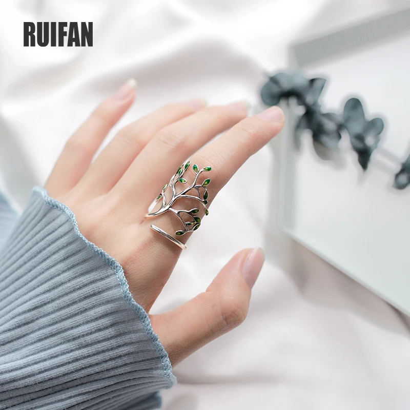 Женские открытые кольца Ruifan, 925 пробы из серебра с каплевидными листьями, гипоаллергенные ювелирные изделия из стерлингового серебра ручной работы, YRI136