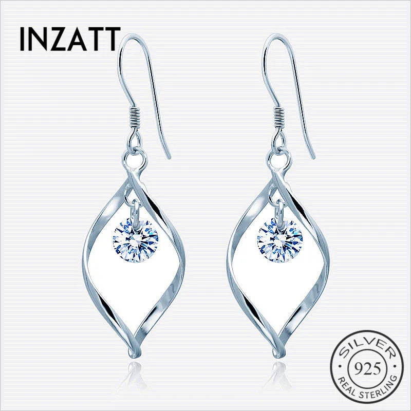 INZATT 2018 Новый Twised реального 925 пробы серебро Для женщин серьги высокое качество циркон Fine Jewelry аксессуары для Обручение