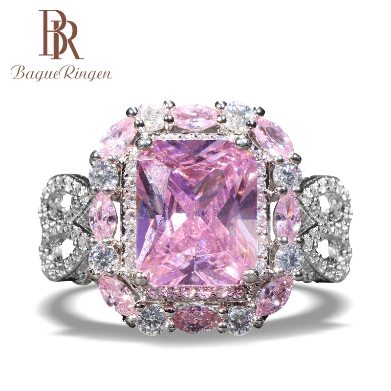 Bague Ringen, высокое качество, Женское Обручальное кольцо с квадратным размером, драгоценные камни, розовый/желтый/белый цвет, серебро, 925, ювелирное изделие, женский подарок