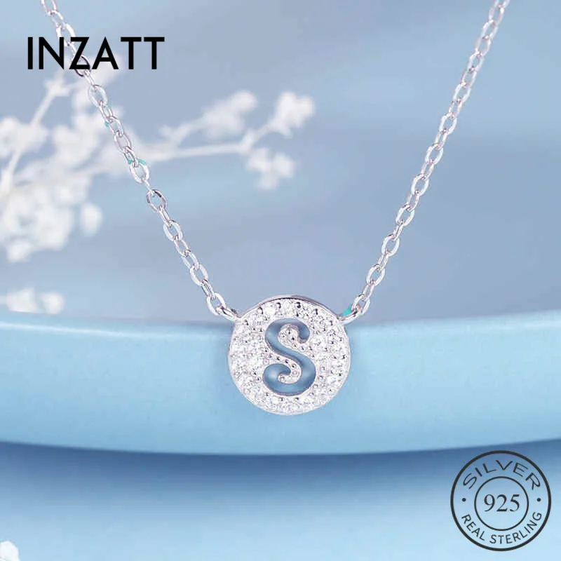 INZATT, Настоящее серебро 925 пробы, циркон, 26 букв, кулон, ожерелье для женщин, для дня рождения, вечеринки, изящное ювелирное изделие, милые аксессуары