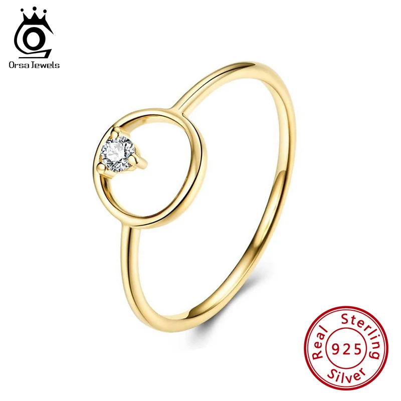 ORSA JEWELS Настоящее 925 светильник роскошные круглые кольца пасьянс фианит AAAA Стерлинговое Серебро Простое модное кольцо ювелирные изделия SR191