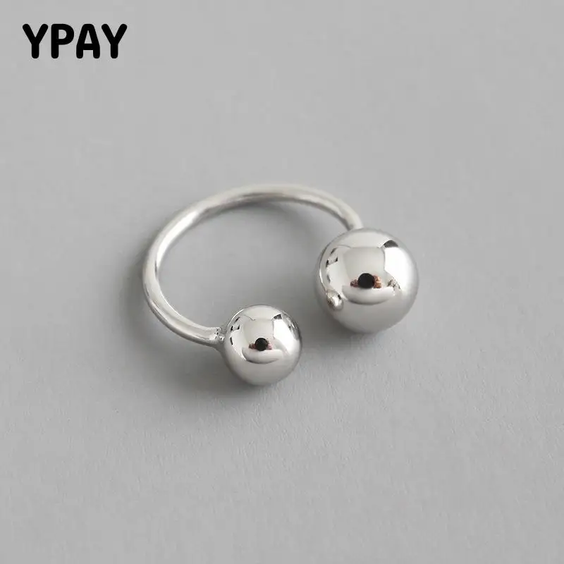 Уход... натуральная 925 пробы серебро незамкнутые кольца с регулируемым размером для Для женщин корейский стиль махрово бусины палец кольцо ...