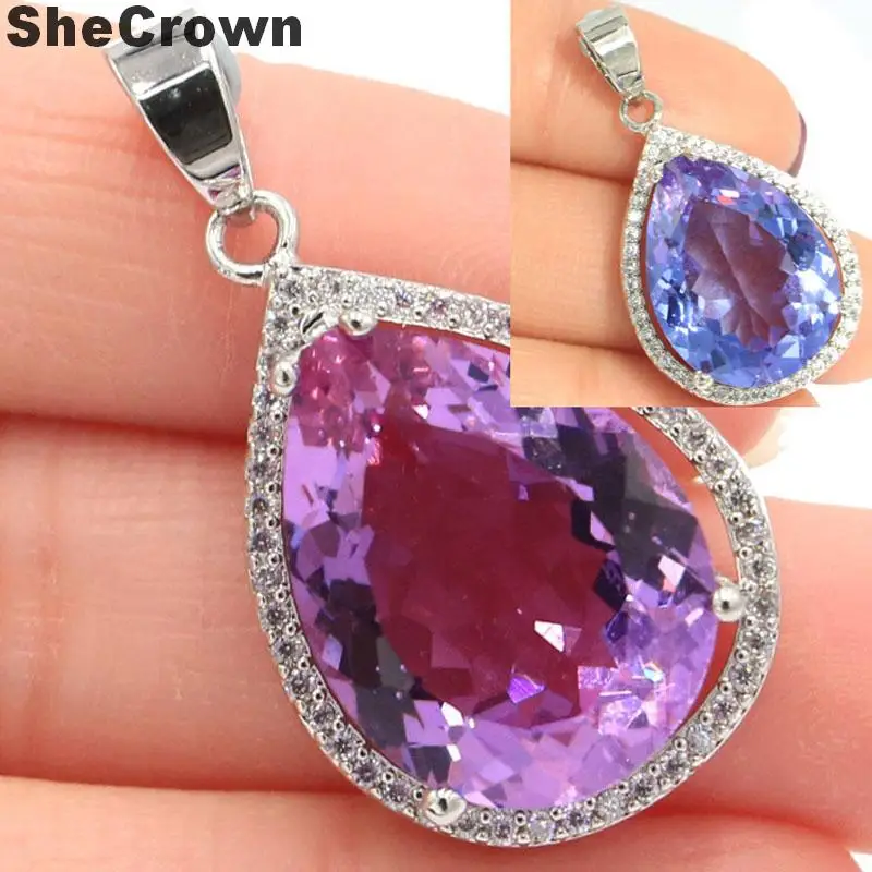 Делюкс Большой капля драгоценный камень Цвет Изменение александрит и Топаз CZ 925 Серебряный кулон 34x19 мм