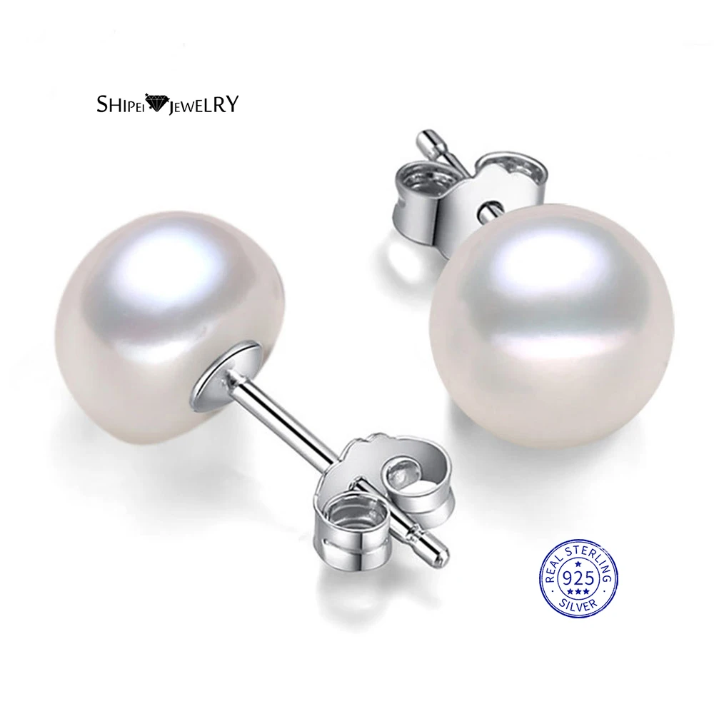 Серьги-гвоздики с жемчугом Shipei для женщин, 100% Серебро 925 пробы, 6 мм, серьги с пресноводным жемчугом, серебро 925, ювелирное изделие, подарок на день рождения