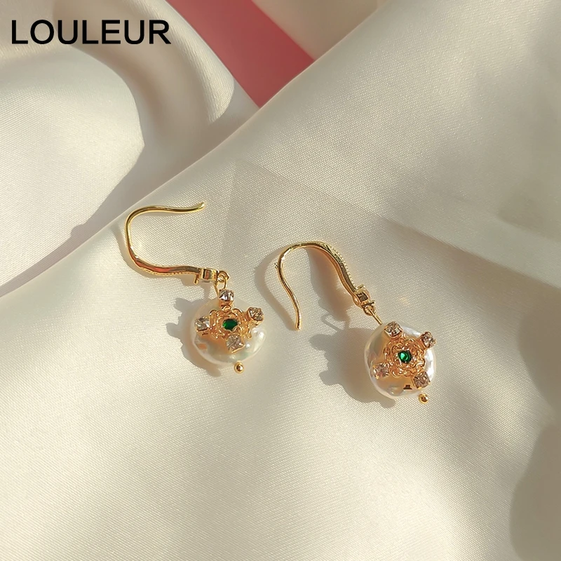 Женские винтажные серьги-подвески LouLeur, элегантные серьги с натуральным жемчугом в стиле барокко, свадебные серьги с цирконием ручной работы, ювелирные украшения для помолвки