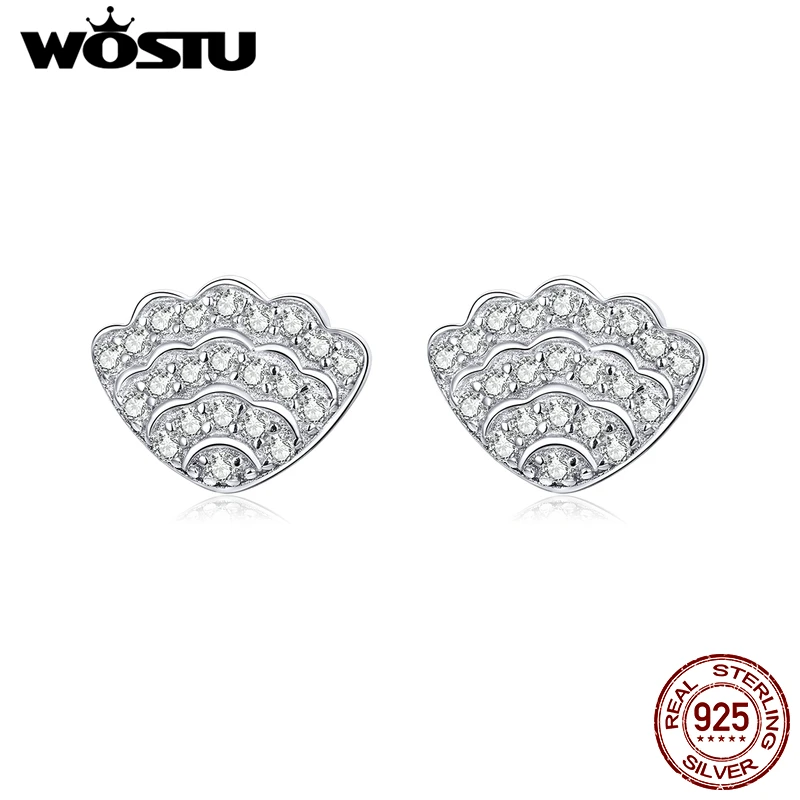 WOSTU 100% 925 Sterling Silver Lucky Shell Stud Earrings For Women Wedding Small Earrings Zircon Silver Jewelry CTE342