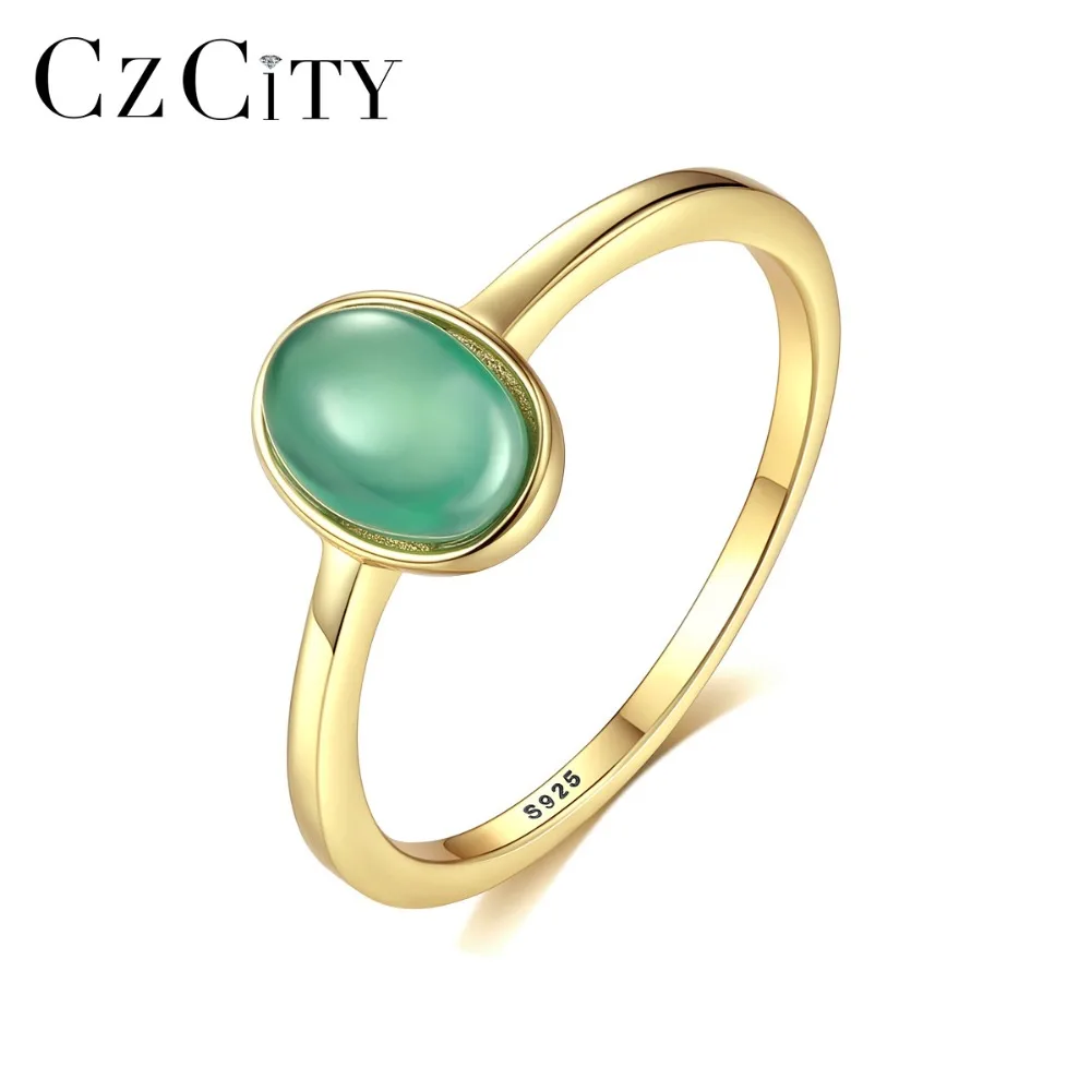 CZCITY натуральная 925 стерлингового серебра Овальный изумрудные кольца для Для женщин темпераментная Femme Кольца с полудрагоценными камнями то...