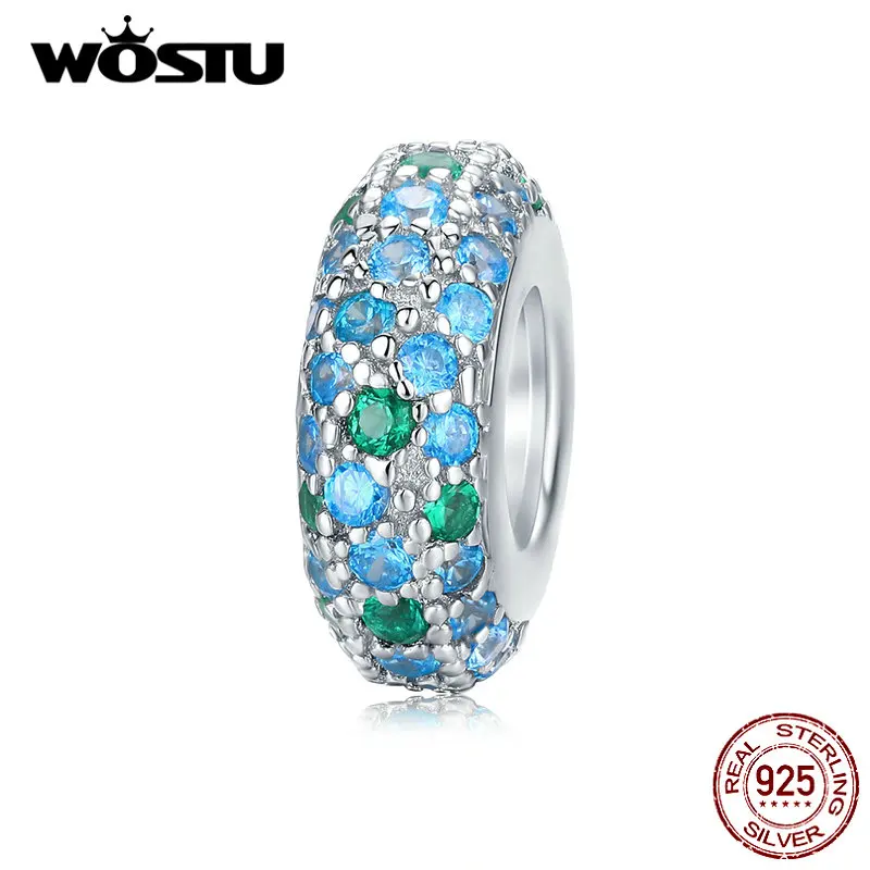 WOSTU 100% 925 пробы, Серебряный двухцветный циркониевый ограничитель, силиконовые бусины, подходят для оригинальных браслетов и браслетов, DIY ювелирных изделий CTC119