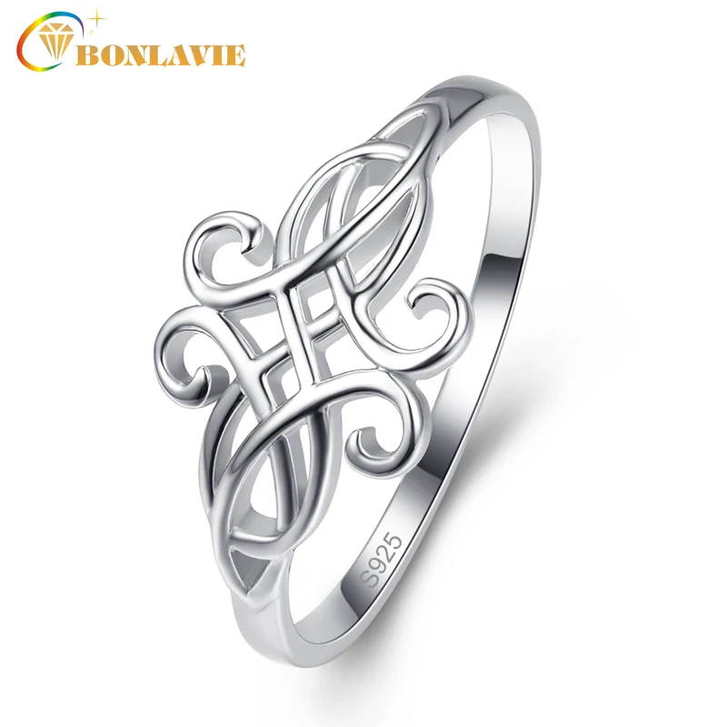 BONLAVIE женские 925 пробы Серебряный кельтский полые узел Бесконечность Вечность Обручальное стекируемые кольцо