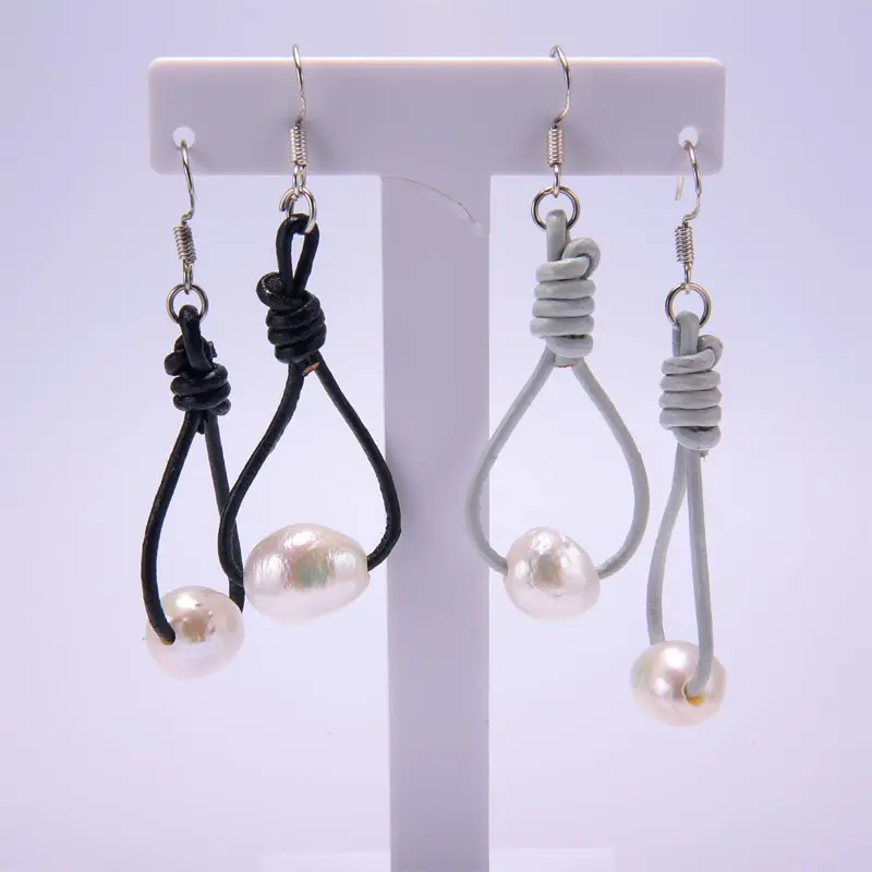 Даими Серьги с жемчугом с Серебряные серьги 9-10 мм БАРОККО Серьги с жемчугом TLeather шнур серьги отправлен к маме