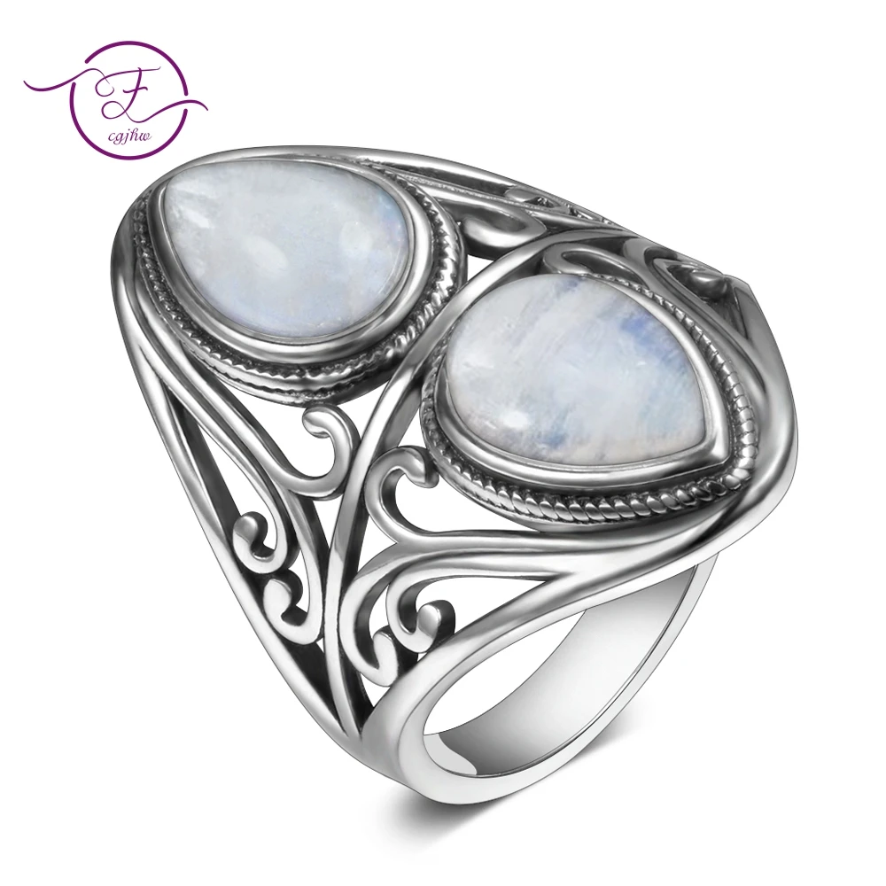 Женские кольца с натуральным радужным лунным камнем 6x9 мм, ювелирные изделия из стерлингового серебра 925 пробы, винтажные вечерние кольца на годовщину, подарки для женщин