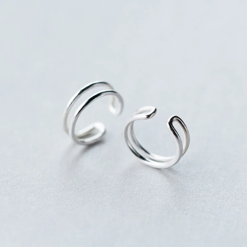 (13 мм * мм 4 мм) маленький реальный. 925 пробы Серебряные ювелирные изделия двухслойные/два ряда клип серьги (не пронзил) GTLE1550