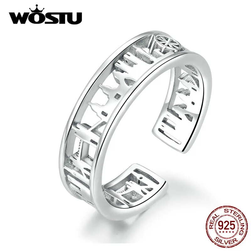 WOSTU, новая мода, 925 пробы, серебро, Лондон, город, винтажные кольца для женщин, регулируемые кольца, палец, для свадьбы, вечеринки, ювелирные из...