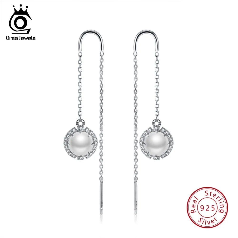 ORSA JEWELS, серебряные серьги из натуральной 925 пробы для женщин, серьги-капли с искусственным жемчугом, модные женские элегантные ювелирные изделия SE74-Z