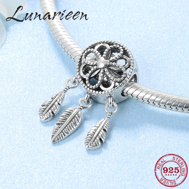 Новая мода 925 пробы серебряные перья и цветы тонкой Подвески бусины подходят оригинальный Pandora талисманы изготовление браслетов