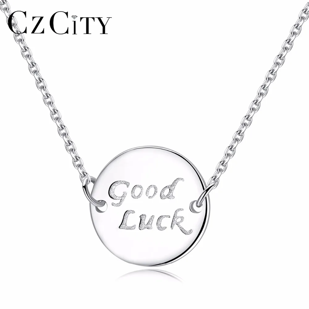 CZCITY Круглый Серебряный кулон ожерелье s Good Luck слова ювелирные изделия ожерелье для женщин белое золото покрытием подарок на день рождения д...