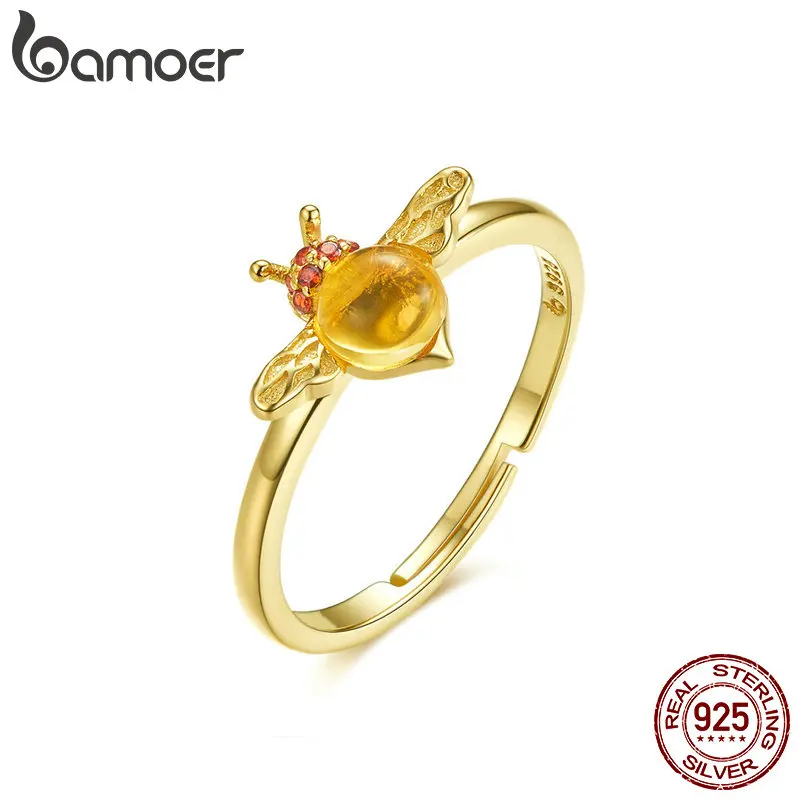 ALLNOEL кольца из стерлингового серебра 925 для Для женщин 100% 14 K Gold 5*7 мм природные драгоценные камни цитрин граненый фианит кольцо пчела Свадебн...