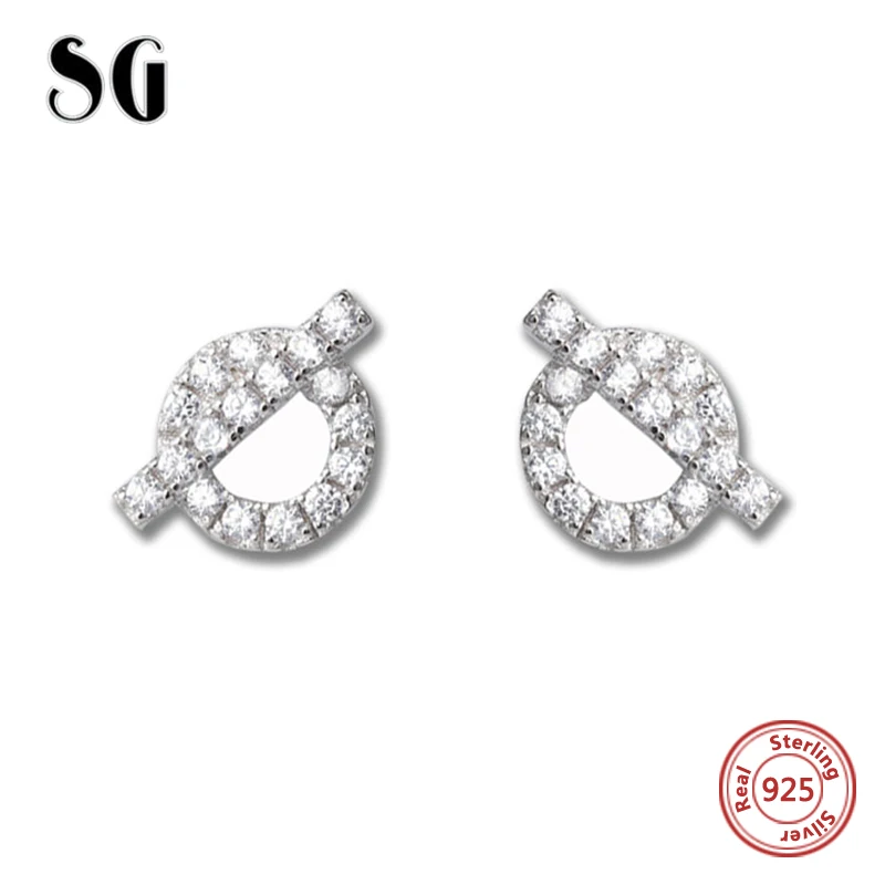 Серебряные серьги-гвоздики 925 пробы с геометрическим кубическим цирконием и кристаллами круглой звезды для женщин, свадебные и вечерние модные ювелирные изделия, новинка 2019