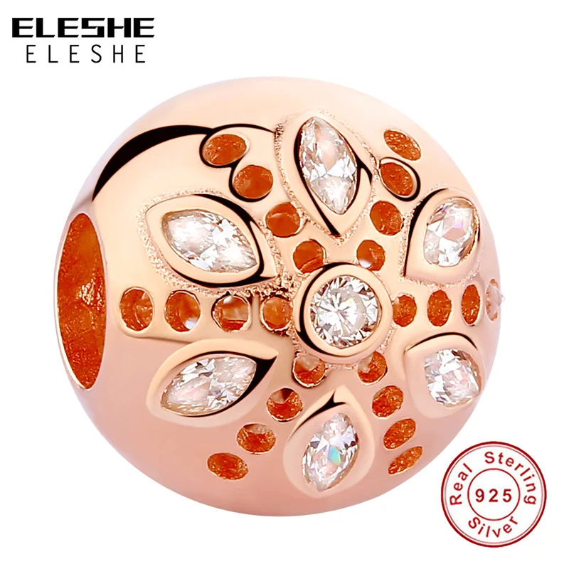 Подходит для ELESHE, очаровательный браслет, серебро 925, оригинал, розовое золото, снежинка, подвески, 925 пробы, серебро, круглые бусины для изготовления ювелирных изделий