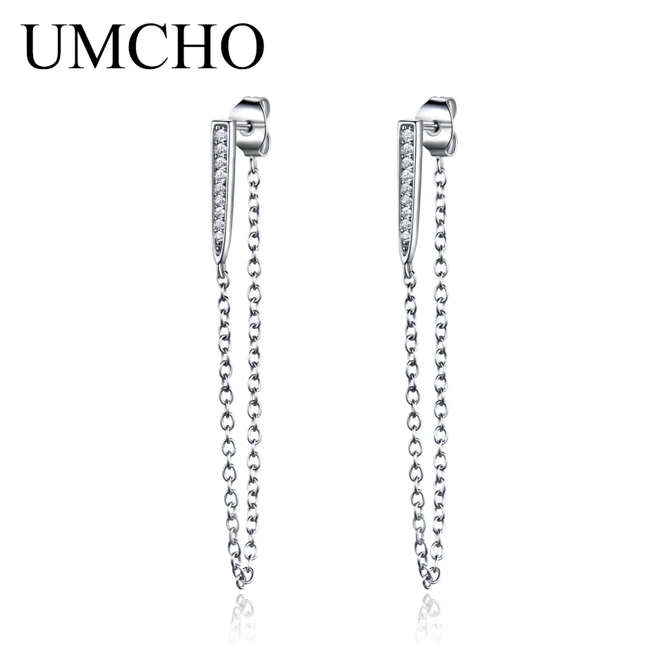 UMCHO 925 пробы Серебряные длинные серьги для женщин Висячие серьги для женщин Романтические Роскошные Длинные серьги подарок Вечерние