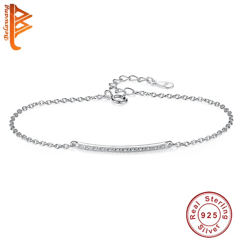 Модный 100% 925 пробы Серебряный Блестящий Кристальный длинный браслет для женщин, Дамская мода, звено цепи, квадратный браслет, ювелирное изделие