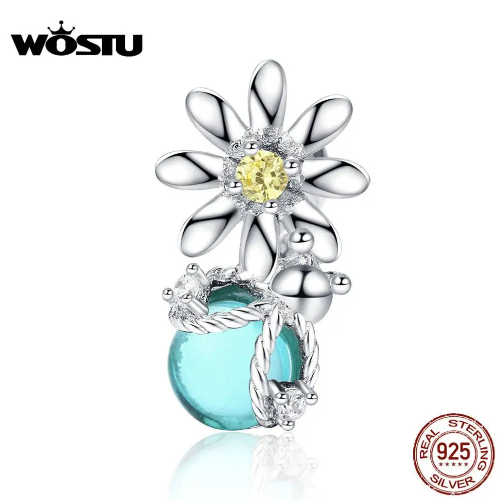 WOSTU, 925 пробы, Серебряный цветок маргаритки и светлячки, бусины, шарм, подходит к оригинальному браслету, подвеска, хорошее серебро, 925, ювелирное изделие, CQC1369