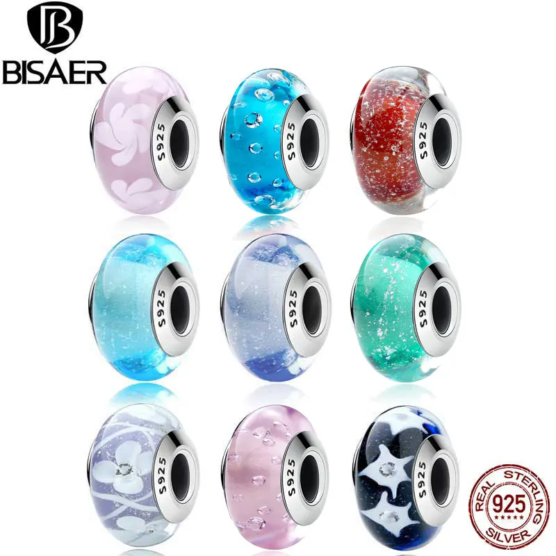 925 пробы, серебряные бусины из муранского стекла, подходят для шармов, оригинальный браслет, подлинные серебряные ювелирные изделия, ювелирное изделие, 925 пробы, ECZ045