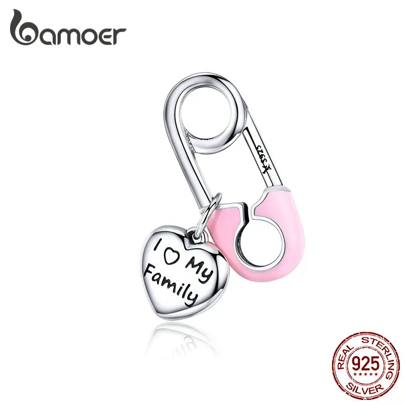 BAMOER дизайнер стерлингового серебра 925 розовый эмаль Семья Сердце талисманы для бусины браслет и цепочки Ожерелья Подвески SCC1145
