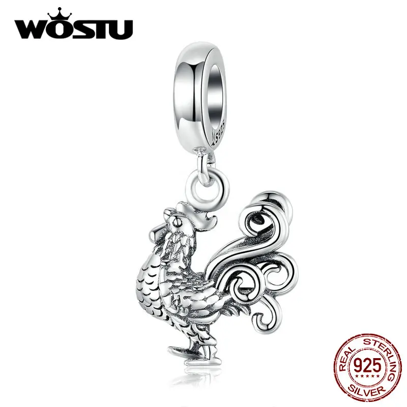 WOSTU, новинка, модный 925 пробы, Серебряный петух, бусины, животные, талисманы, подходят к оригинальному браслету, кулон для женщин, ювелирное изделие, подарок CQC1337