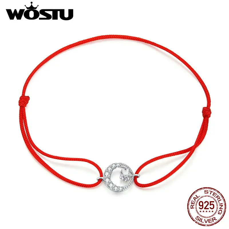WOSTU Moon & Star браслет из красного веревочного серебра 925 пробы CZ Круглый Регулируемый 20 см Lucky браслеты ювелирные изделия для свадебной вечеринки CQB177