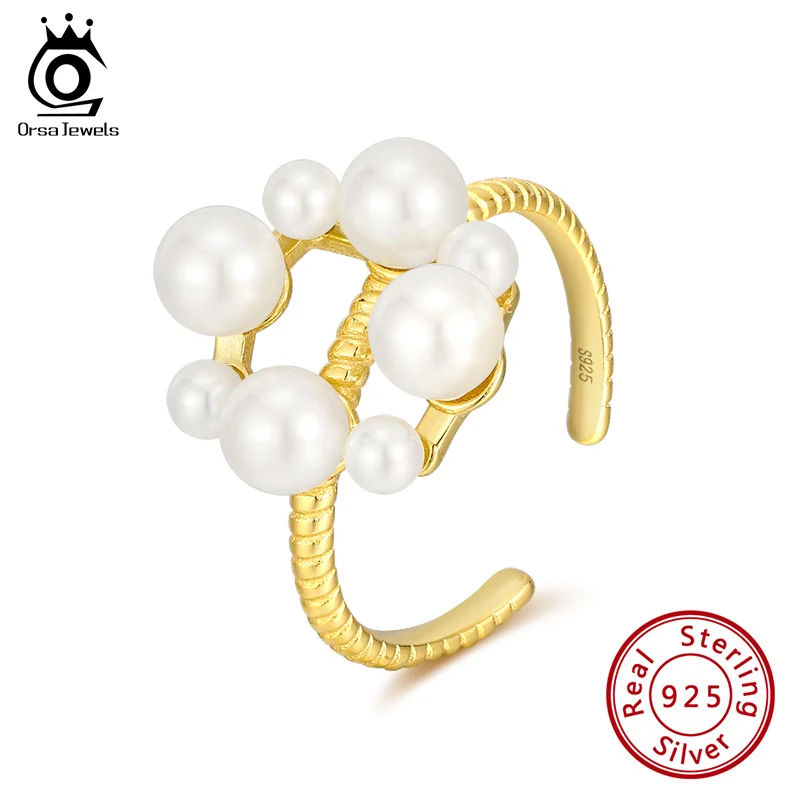 ORSA JEWELS, настоящее 925 регулируемое кольцо, Стерлинговое Серебро, высший сорт, имитация жемчуга, 3 слоя, позолоченное кольцо, хорошее ювелирное изделие SR165